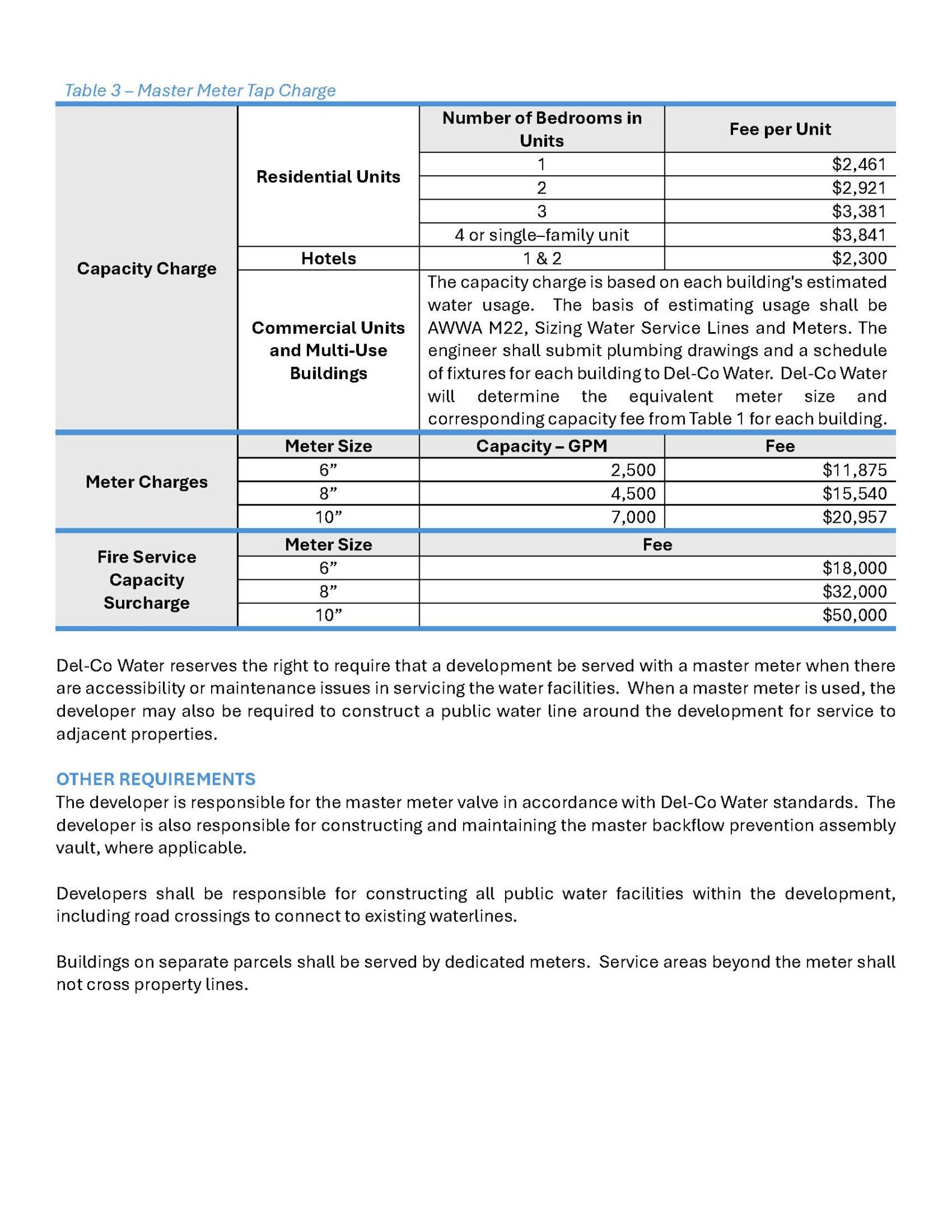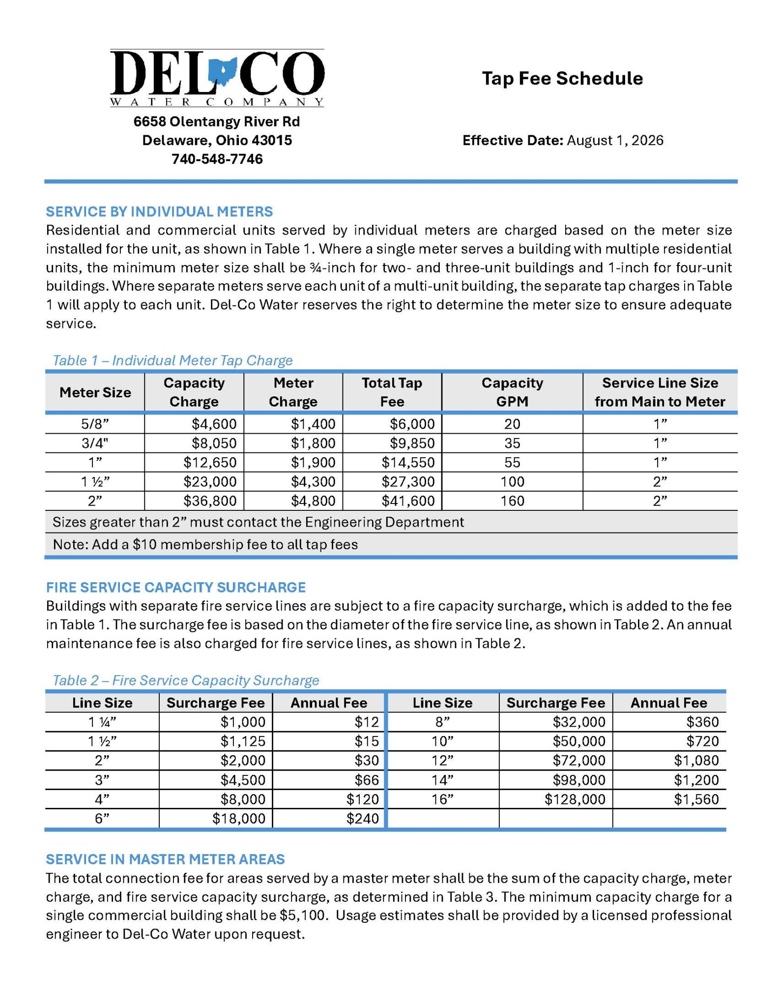 CURRENT TAP FEES